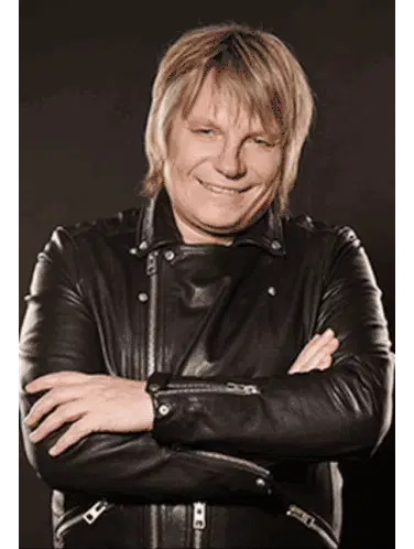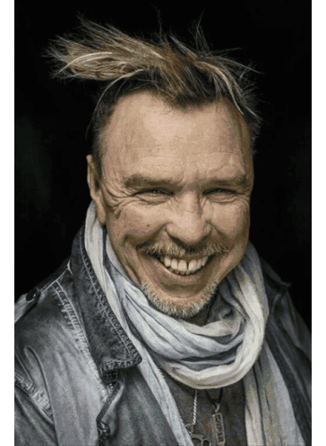 a man with a scarf around his neck and a necklace that says ' salomon ' on it