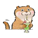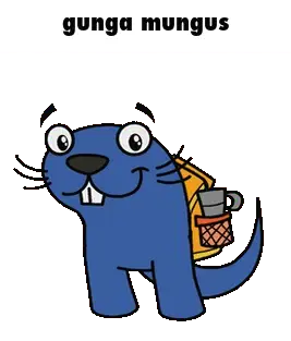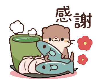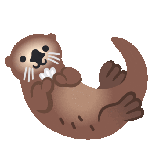 A cheerful cartoon otter floats on its back, happily holding a white object in its paws.