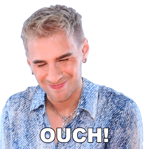 Brad Mondo reacts with a pained expression, closing his eyes and grimacing while saying 'Ouch!'