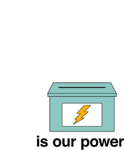An animated sticker showing a ballot box with a lightning bolt, emphasizing 'Vote is our power' for civic engagement.