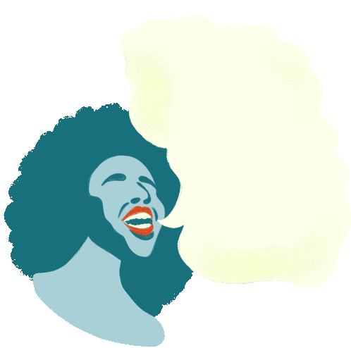 An animated sticker of a person speaking, with a speech bubble displaying 'Our Votes Our Voices' to encourage civic engagement.