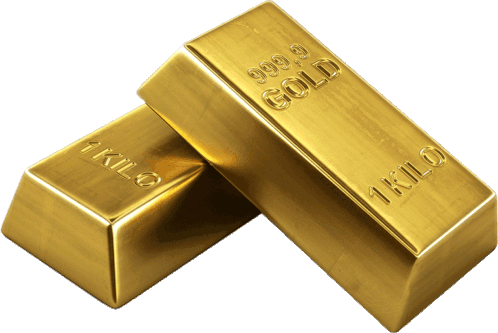 two 1 kilo gold bars are stacked on top of each other on a white background