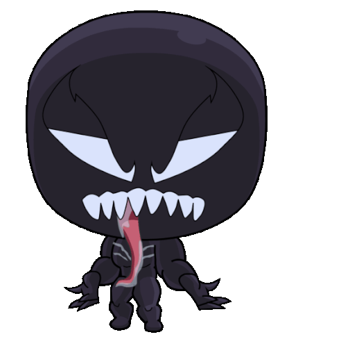 Chibi Venom looking completely over it, with his tongue out and arms spread in a gesture of exasperation.