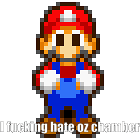 Mario pixel art sticker featuring the explicit caption 'I fucking hate oz chamber' below the iconic character.