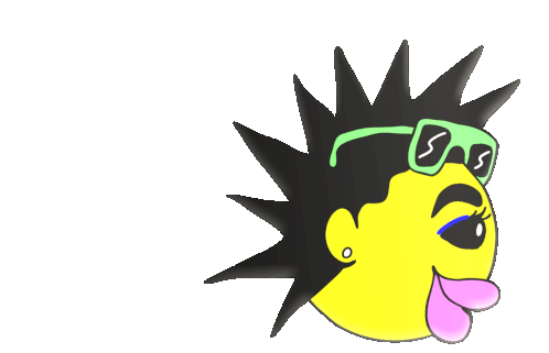Rico Nasty inspired cartoon head with spiky hair and sunglasses chomping with tongue out.