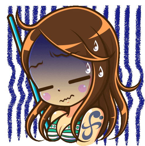 An angry Pacottine Nami from One Piece manga sticker, showing distress with sweat drops and a wavy background.
