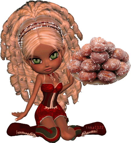 A cheerful cartoon girl with pigtails smiles while holding a plate filled with delicious Paczki donuts, perfect for Fat Tuesday.
