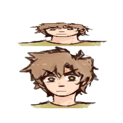 a drawing of a person looking up with a serious look on their face .