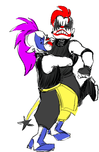 Animated sticker featuring Lucha Libre stars Pagano and Psycho Clown in a powerful hug, showcasing AAA action.