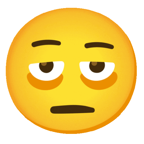 A yellow emoji face blinks slowly, showing extreme tiredness, exhaustion, and stress.