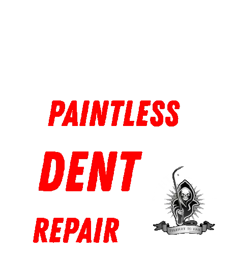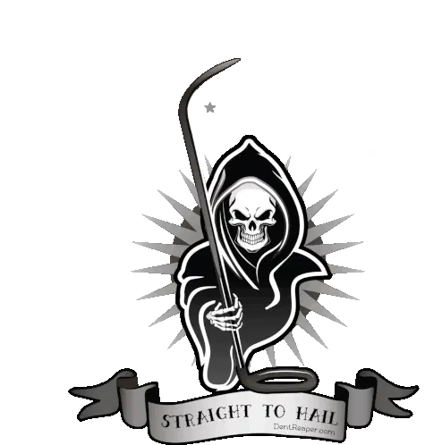 Animated sticker featuring the Dent Reaper grim reaper logo with 'STRAIGHT TO RAIL' banner and prominent 'NEW POST' text, ideal for paintless dent repair content.