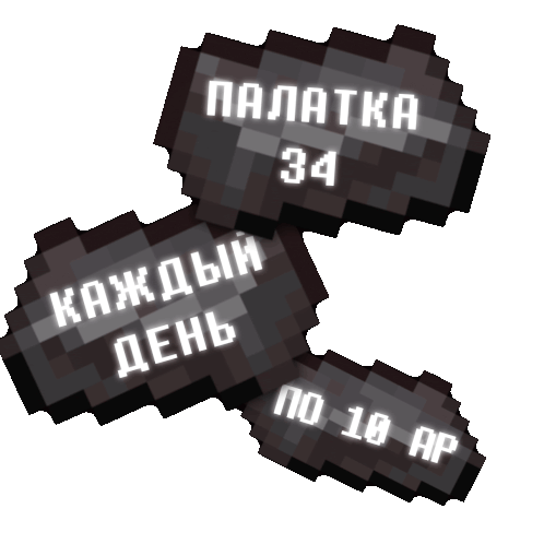 three black blocks with white letters that say " palatka 34 " " каждый день " and " по 10 ap "