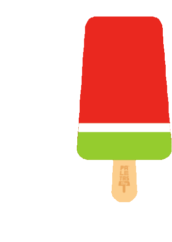 A vibrant Paletas Wey watermelon popsicle with red, white, and green layers, playfully jumping.