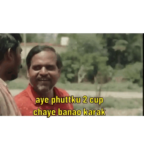 A man from Panchayat asks for two cups of strong tea, gesturing while making the request.