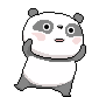 A cute pixel art panda with rosy cheeks performs a simple, funny dance, swaying its body playfully.