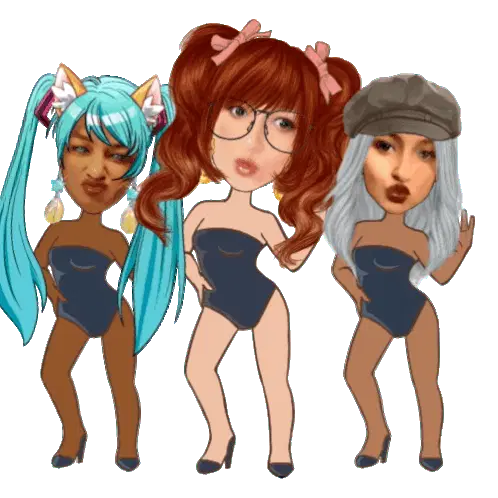 Two animated girls, one with pink hair and one with blue hair, playfully interact with a cute, energetic vibe.