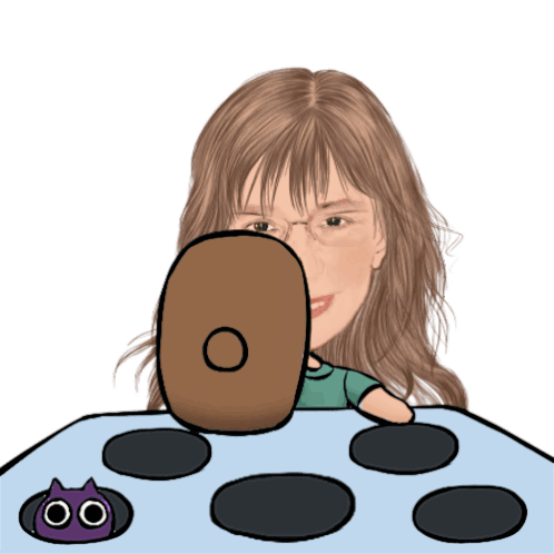 Pandb Love character plays a fun game of Whac-A-Mole, hitting a purple owl with a paddle.