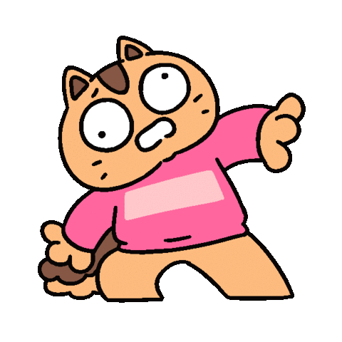 A cartoon cat character with wide eyes and an open mouth looks panicked and anxious, reacting to a shocking event.