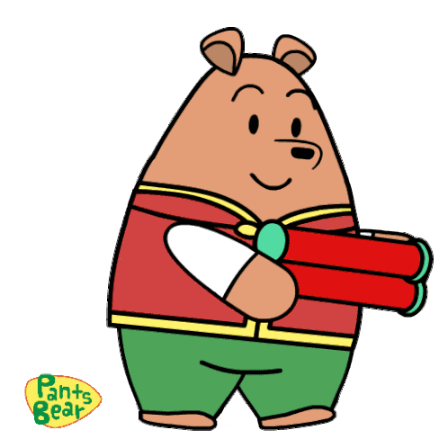 Pants Bear celebrates Chinese New Year, holding a red scroll with 'Gong Xi Fa Cai' wishing prosperity and good fortune.