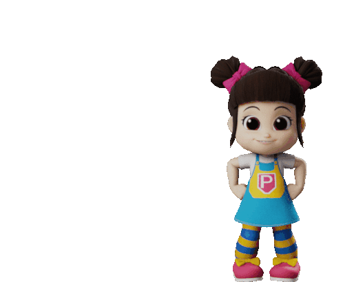Animated sticker of Pipi Zola from Papapipi, a cute cartoon girl with a 'P' on her apron, waving and posing.