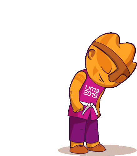 Milco, the Lima 2019 Pan American Games mascot, performs a respectful bow in his Para Judo gi.