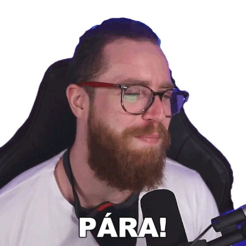 LubaTV reacts with an exasperated 'PÁRA!' while sitting at his microphone, expressing frustration.