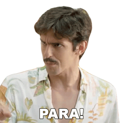 Rafael Infante from Porta dos Fundos emphatically says 'Para!' (Stop!) with a surprised and annoyed expression.