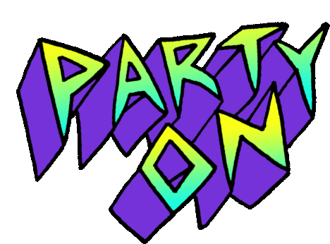 A vibrant animated sticker featuring the bold red text 'PARTY TIME!' surrounded by sparkling yellow fireworks, perfect for celebrating.