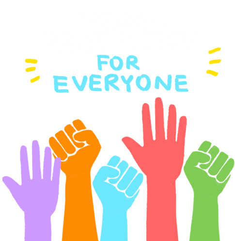 Diverse hands raised in unity symbolize equality and support for all, advocating to Pass The Equality Act Now.
