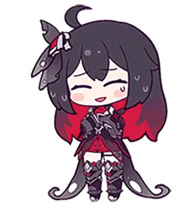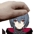 A charming pixel art sticker from Honkai Impact 3rd, featuring a gentle hand patting a cute girl's head. Perfect for fans of Kiana Kaslana, Raiden Mei, and Durandal.