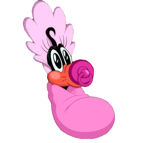 An adorable animated sticker of Baby Daffy Duck (Pato Lucas) with a pink pacifier, wrapped in a cozy pink blanket.