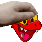 Guilmon from Digimon receives a loving headpat, animated by Shaoranx, showing pure contentment and joy.
