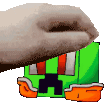 A friendly patpat for the Supercreeper from Minecraft, showing a hand gently interacting with the iconic green mob.