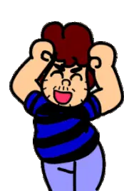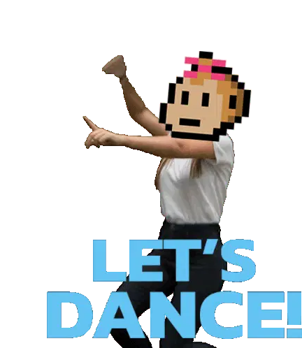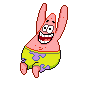 Patrick Star from SpongeBob SquarePants jumps excitedly with arms raised in a fun pixel art style. Yippee!