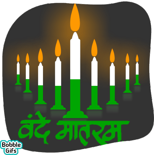 Animated sticker with candles in Indian flag colors and 'Vande Mataram' text, symbolizing Indian patriotism and national pride.