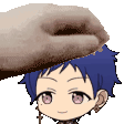 A gentle hand pats Fushimi Yuzuru's head, a sweet moment from Ensemble Stars.