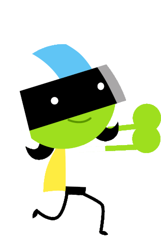 a cartoon character wearing a mask and holding a green object .
