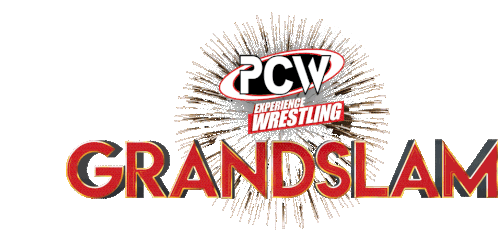 Animated logo for PCW Experience Wrestling's Grandslam event, featuring a dynamic starburst effect behind the organization's name.