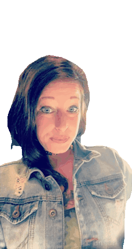 Kristina Jordan smiles and makes a peace sign, wearing a denim jacket and fingerless gloves.