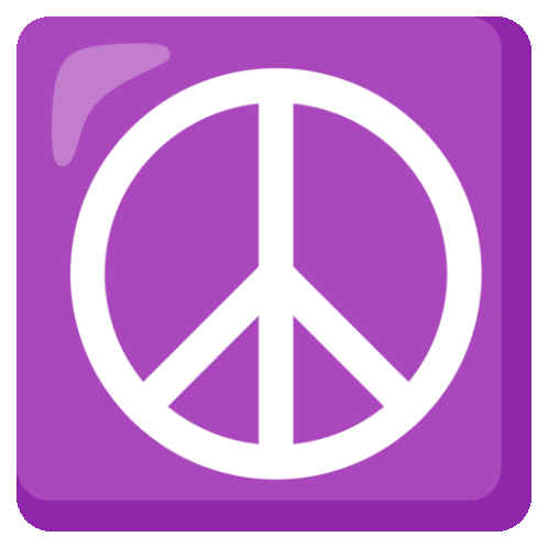 A classic white peace sign symbol prominently displayed on a vibrant purple, rounded square background.