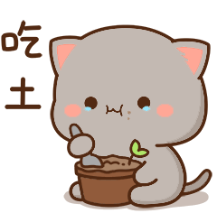 Peach Goma, a cute grey cat, is sadly eating soil from a pot, symbolizing being broke or having no money.