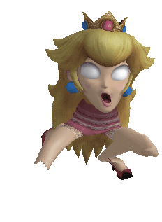 Princess Peach from Super Mario with a distorted, scary face, wide eyes, and open mouth, creating a creepy meme.