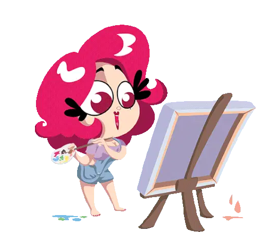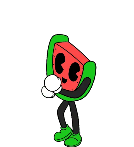 A vibrant red pear with a green stem and leaf, depicted as a simple, charming fruit sticker.