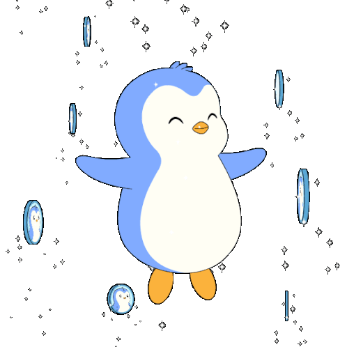 a blue and white penguin surrounded by bubbles on a white background