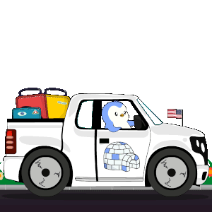 a cartoon illustration of a white truck with a penguin and a igloo on the side