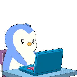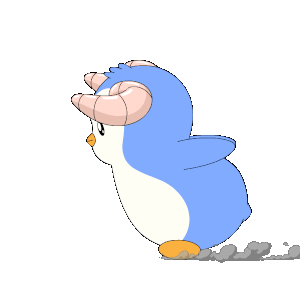 A blue, horned Pengu Pudgy penguin runs with determination, perfect for expressing energetic moods.