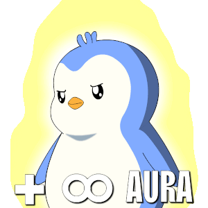 Pengu Pudgy, the cute blue and white penguin, radiates a powerful infinity aura.