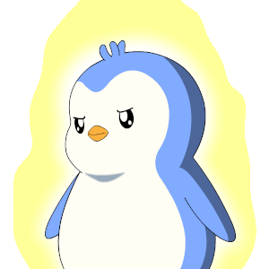 A cute, pudgy cartoon penguin, known as Pengu, with a sad expression, surrounded by a soft yellow aura.
