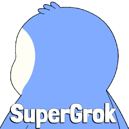 A cute cartoon penguin transforms into a SuperGrok AI bot with a glowing robotic eye, featuring the 'SuperGrok' text.