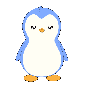A cute blue and white Pengu Pudgy penguin transitions from an angry, frustrated expression to a grumpy, annoyed look.